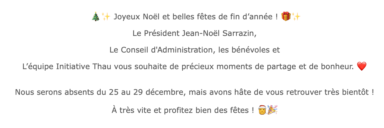 Nous vous souhaitons de bonnes fêtes de fin d'année !
