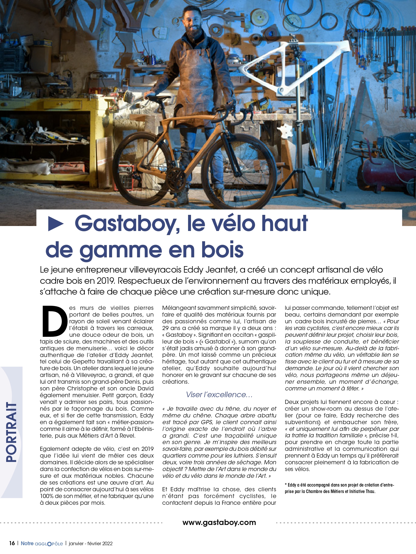 • Article sur l'Atelier de vélos en bois haut de gamme Gastaboy dans le journal de Sète Agglopôle Mediterranée