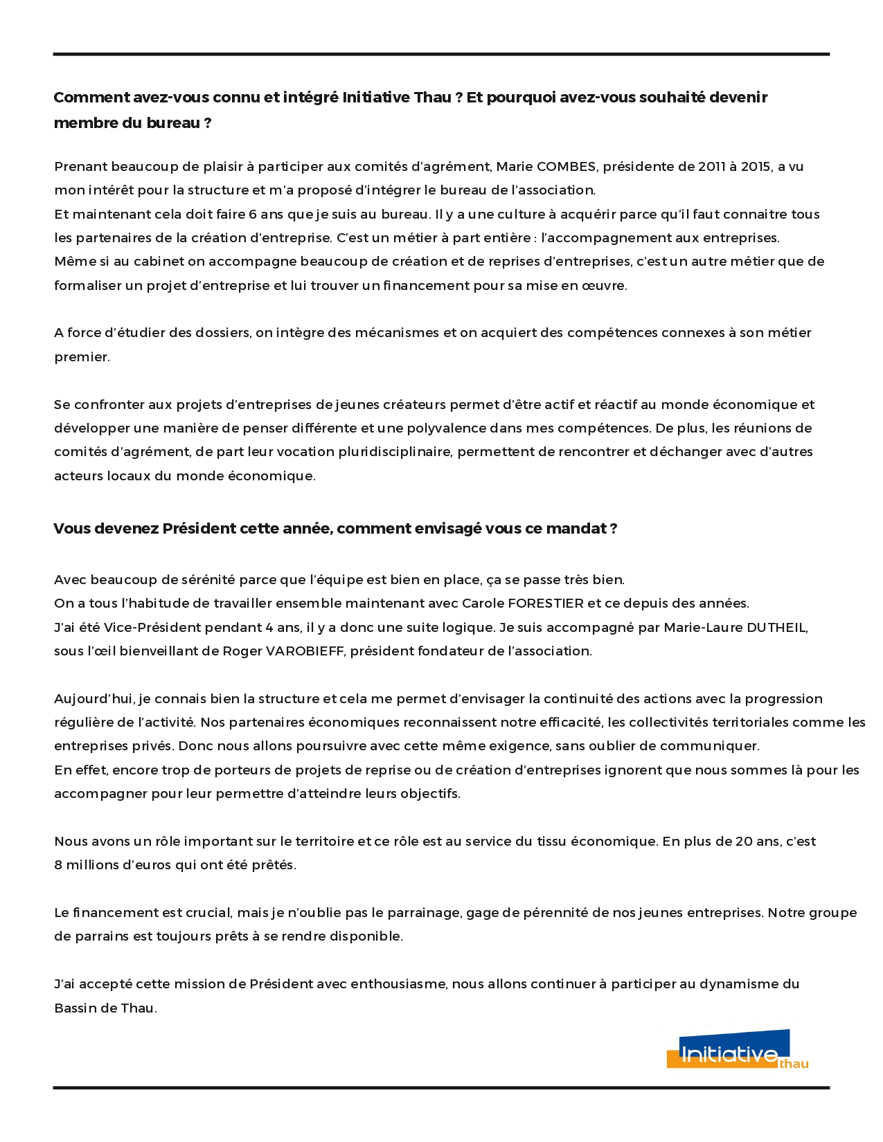 Interview de Jean Noel SARRAZIN, nouveau Président d'Initiative Thau