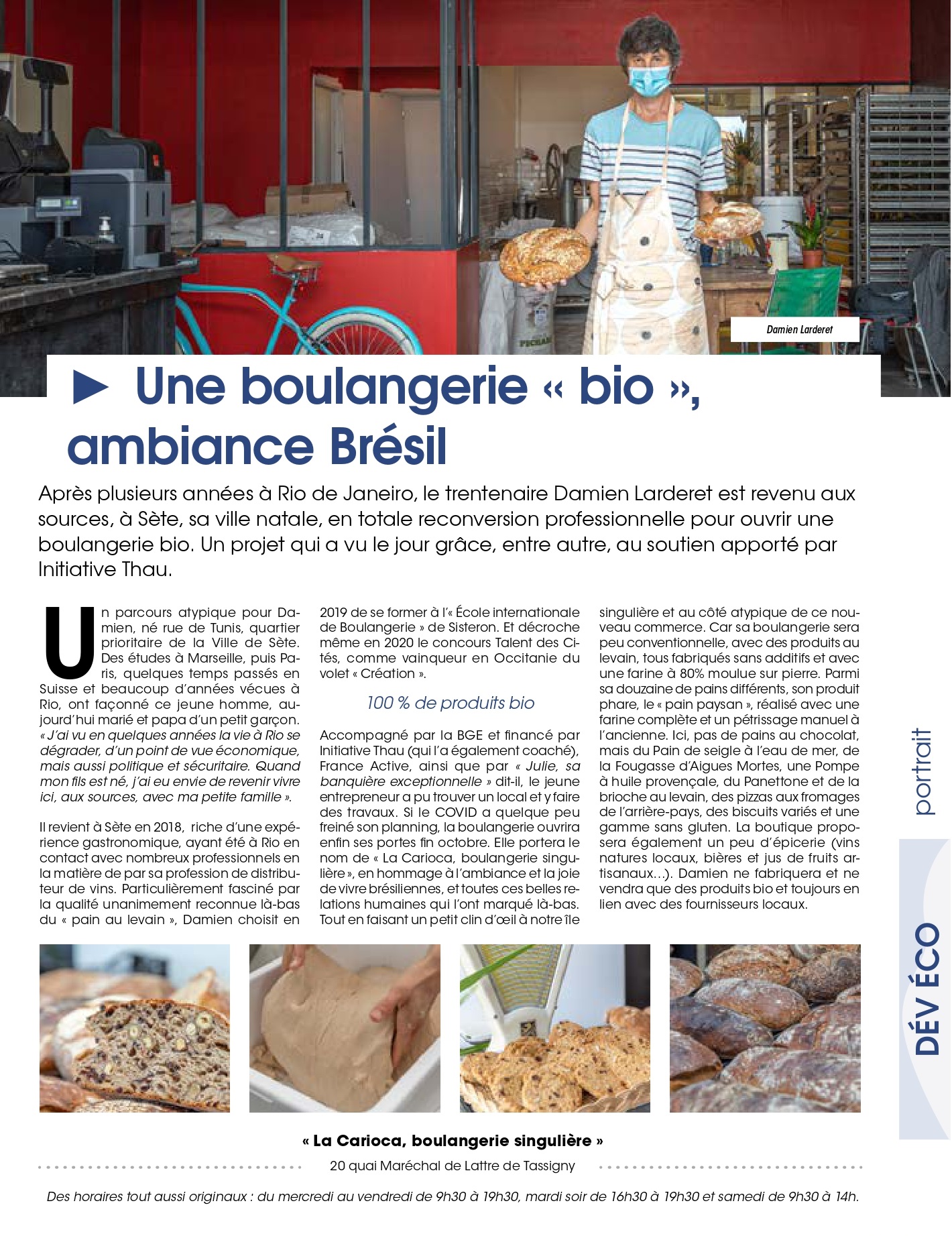 Article dans le journal de l'agglomération sur la Boulangerie bio de Damien LARDERET que nous avons accompagné et financé.